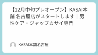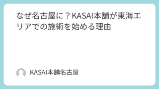 KASAI本舗は、東京を中心に施術を行ってきましたが、このたび 名古屋でも施術を開始することを決めました。その理由は、大きく3つあります。■ ① 東海エリアのお問い合わせが増加「名古屋でも受けたい」「東京まで行くのが難しい」という声を多くい...